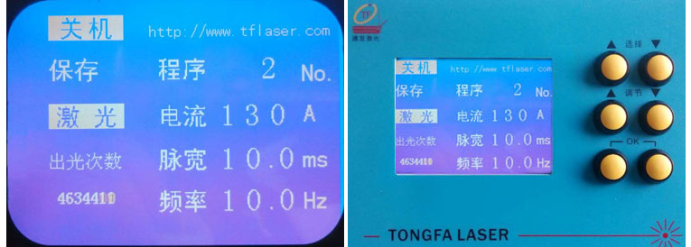 2、本首飾激光點焊機軟件可選擇中文或者英文界面,對不同加工位置選擇相應(yīng)的激光焊接加工參數(shù)。由選擇按鈕移動光標到相應(yīng)的參數(shù)位置,由調(diào)節(jié)按鈕調(diào)節(jié)參數(shù)的大小;